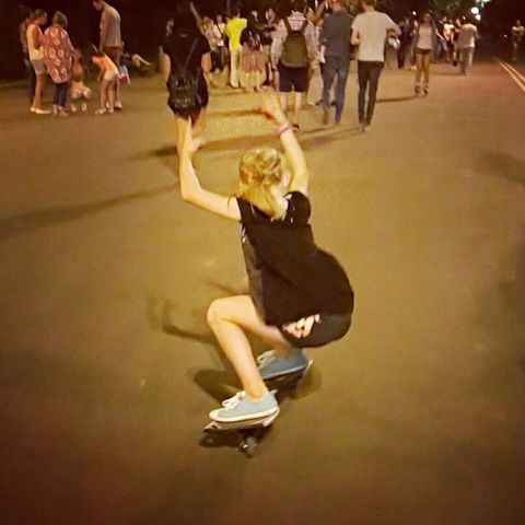 Маша на рипстике, и я на лонге ловлю кадр, в парке Горького только что
