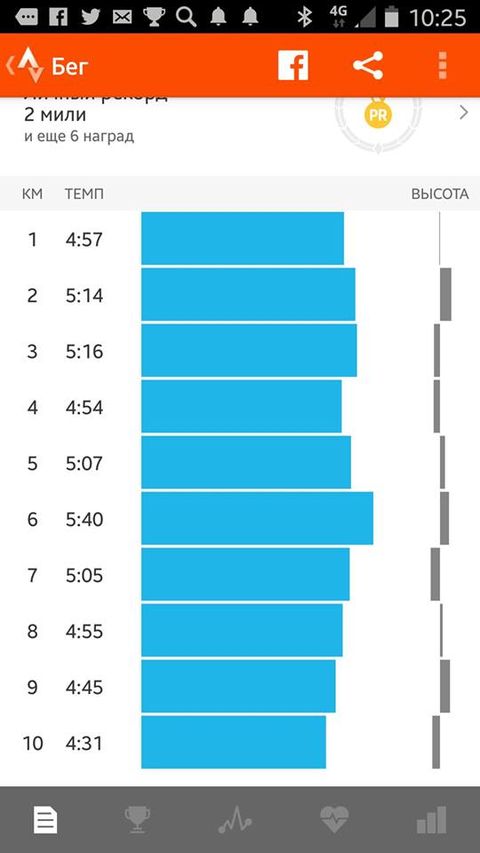 Утренняя пробежка 10км. 50:50. На 40 сек быстрее моего результата на московском марафоне. В пятую кардиозону (180-190) ушёл в последние 10 мин. Елизавета Алиева бежала со мной первые 3.5км. Молодец!