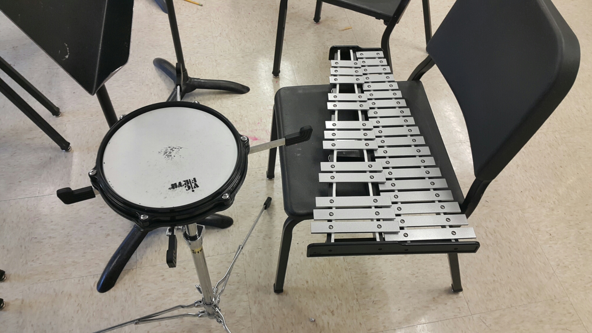 Поскольку Маша не занималась ни духовым, ни скрипкой, ей придется осваивать вот такой Percussion Kit: