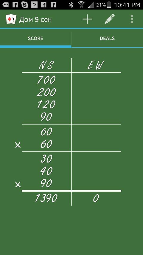 Результаты сегодняшней игры в бридж. Мы с Машей выиграли все шесть партий подчистую со счетом 1390:0 :)) проигравшие идут спать в расстройстве