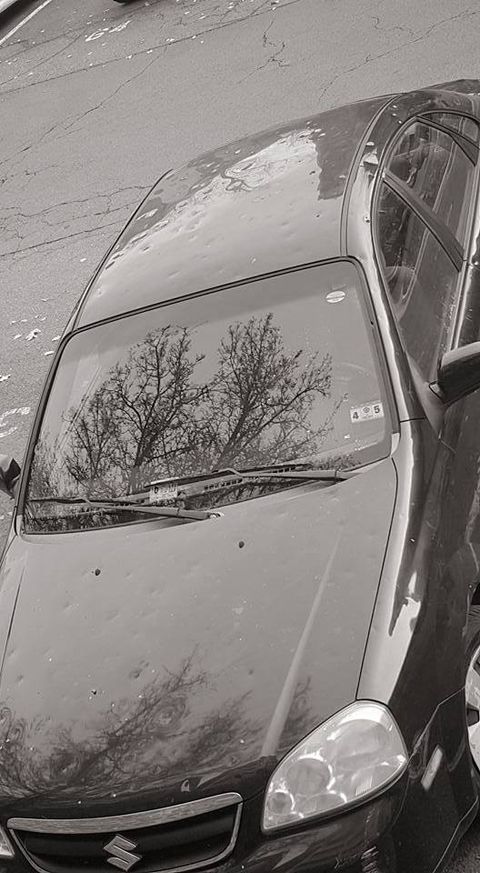 Во дворе стоит Suzuki Forenza, на которую напал какой-то дикий метеоритный град, или.. я даже не могу представить что еще так может побить кузов. Вся машина, с носа по хвост битая чем-то мелким в каждом сантиметре. При этом царапин особо нет. Что бы это могло быть?