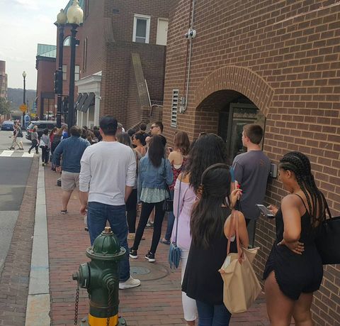 В это кафе в Вашингтоне всегда огромная очередь. Сегодня, например, около ста человек. Это потому, что тут продают самые вкусные капкейки в городе. Ждем, чтобы попробовать. Уже тридцать минут.
