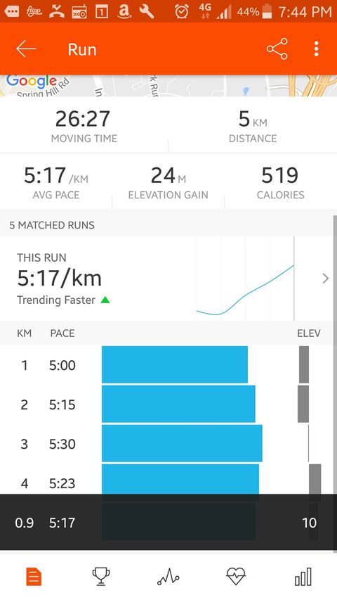 Пробежали с Машей под ручку 5 км за 26:27, 5:17/км.