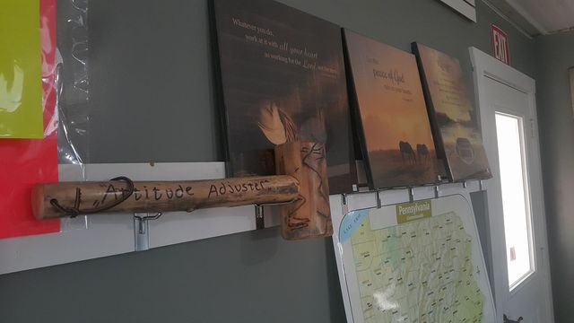 В амишевском книжном (где-то наполовину состоящим из библейской и околобиблейской литературы) висит attitude adjuster