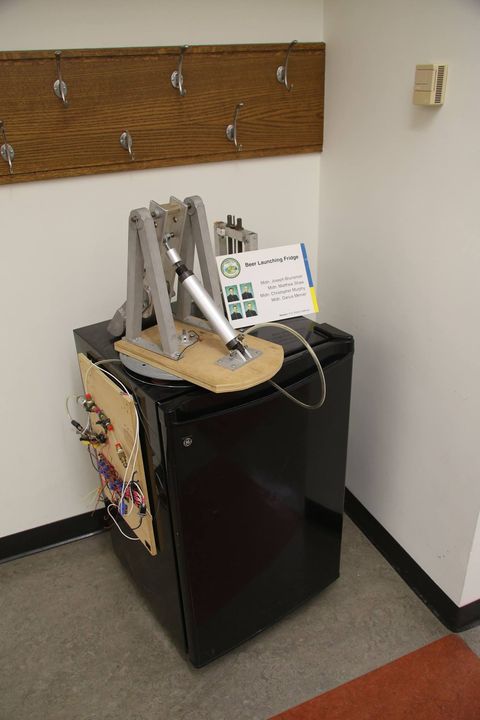 А черный холодильник — это Beer Launching Fridge. Вот видео с ним: https://www.youtube.com/watch?v=rygr0OUYRt8
