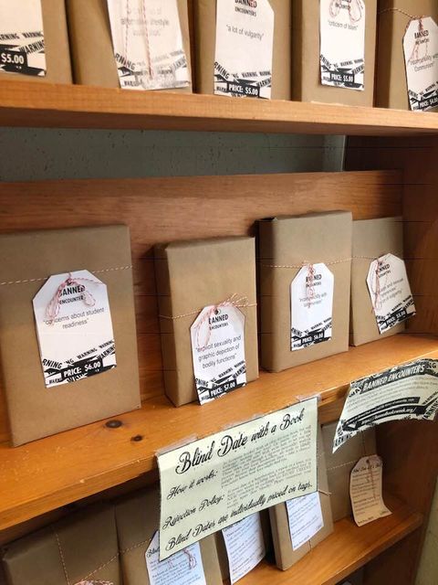 Полка с banned encounters и blind date with a book. Платишь за кота в мешке) banned encounters – книги, которым заказан путь в библиотеки и книжные магазины. Что за книги не раскрывается до покупки)