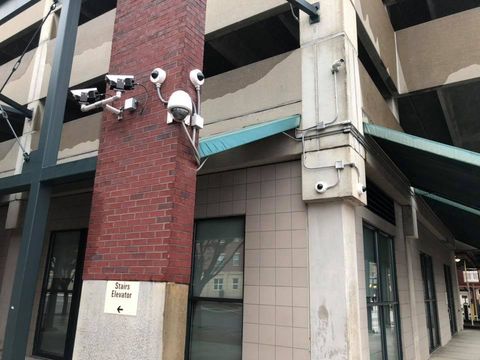 На каждом углу и вдоль улиц в университетском кампусе Ричмонда стоят по много камер. Всего их тут тысячи. Вот на этом углу их восемь. Похоже, цель была в полном отсутствии слепых зон и, судя по инфракрасной подсветке, работа даже по ночам.