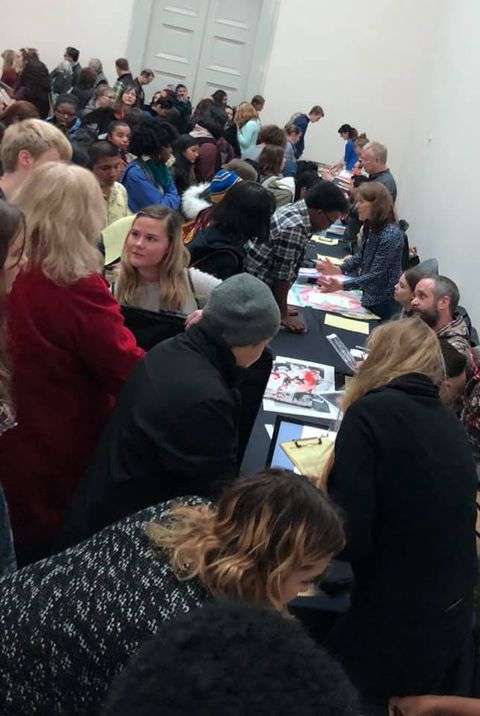 Сегодня – national portfolio day. День в году, когда представители арт колледжей и университетов встречаются с будущими студентами и дают им обратную связь, плюсы, минусы, что включать в портфолио, что – нет. Рассчитывать ли на гранты и прочее по поступлению. С каждым проводят минимум 15 минут времени. На фото – одна двадцатая пространства и толпы. Много людей, много колледжей. Интересно, что тут почти никогда не разговаривают с родителями во всех учебных заведениях по любому поводу. Их как бы нет. Поступать тебе – с тобой и разговор. Вот и сегодня – многие пришли с мамами, но мам и пап никто не замечает.