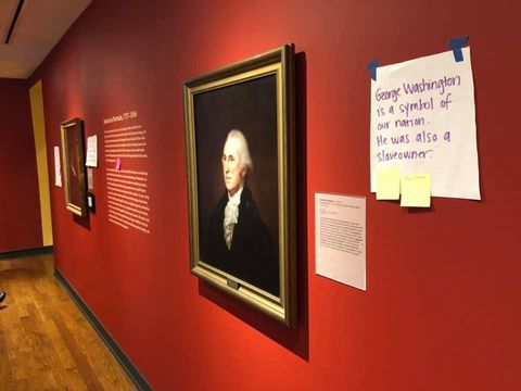 Брожу по небольшому музею в Вилмингтоне. Что здесь интересно – можно оставлять оффлайновые комменты к чему угодно. Периодически на листочках на изолента вбрасываются холивары. Люди приличные, на лоб Вашингтону ничего не лепят.