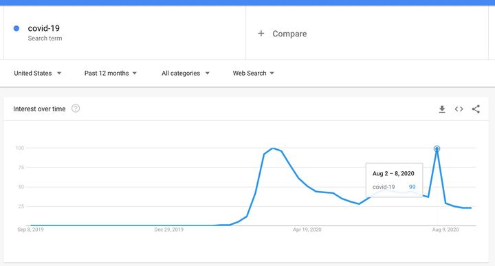 Google trends – а что у нас было 2-8 августа, что популярность covid-19 взлетела кратковременно на уровень марта-апреля?