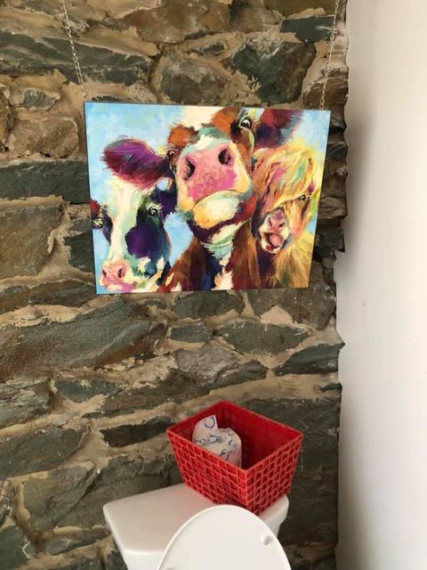Доехали с Надей до Purcellville на великах. Тут в местной кофейне-пекарне отличная живопись в туалете. Прям захотелось у них откуда купить эту картину