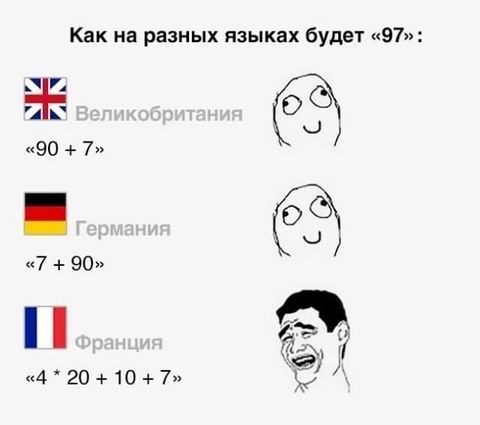 Меня тоже забавляла двадцатиричная система во французском пока я не задумался а как у нас