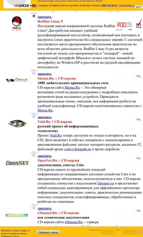 Что интересно, так это то, что лидерами продаж были диски, которые я наштамповал просто чтобы забить ассортимент – юниксы и линуксы. Понятно, что на них не шло ни одной ссылки с партнёрских сайтов, но их покупали в нагрузку, и в итоге они держали топ;) и были проще всего и дешевле в производстве.