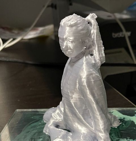 Первый блин комом, но хотя бы технология теперь понятна. Разрешение и грубость PLA, конечно, ничем не исправишь. Возможно, наложилось еще то, что Маша непроизвольно двигалась при съемке. Нужно как-нибудь попробовать снять четырьмя мобильниками, тогда не нужно будет замирать на так долго. Для маленьких объектов стала очевидна полезность 3D-сканера. Все-таки с рук снимать – совсем не то получается.