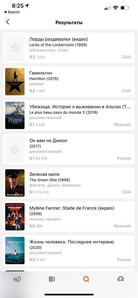 КиноПоиск ещё Яндексу принадлежит или его кто-то угнал и испортил? Что-то давно я туда не заходил. В мобильном приложении первое место самых рейтинговых фильмов занимают “Лорды раздевалки”, четвертое – “Он вам не Димон”. Сайт КиноПоиска – единственный, который загрузившись, полностью перегружается через секунду после рендера первой страницы, чтобы загрузиться уже со мною авторизованным через Яндекс SSO. В мобильном приложении нет рейтинга топ 250 и прочих, которые несомненно пользуются популярностью, но почему-то избежали внимания продукт-оунера аппы. Если ты где-то нажал “я хочу посмотреть этот фильм” или “я смотрел этот фильм”, то увидеть, что я там навыбирал, нельзя. Видимо, список таким образом выбранных фильмов доступен, похоже, только админам и роботам, чтобы рекомендации строить. В топе 250 лучших фильмов планеты встречается горсть фильмов российского кинематографа, которые в той компании смотрятся реально странно. Ну правда, “Доктор Лиза” стоит между “Трех биллбордов на границе Эббинга” и “Адвокатом дьявола”.