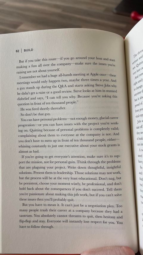 Very True! “…You can have personal problems not enough money, glacial career progression or you can have issues with the project you’re working on. Quitting because of personal problems is completely valid; complaining about them to everyone at the company is not. And you don’t have to mess up in front of ten thousand people, either-whining constantly to just one executive about your stock grants is almost as bad.