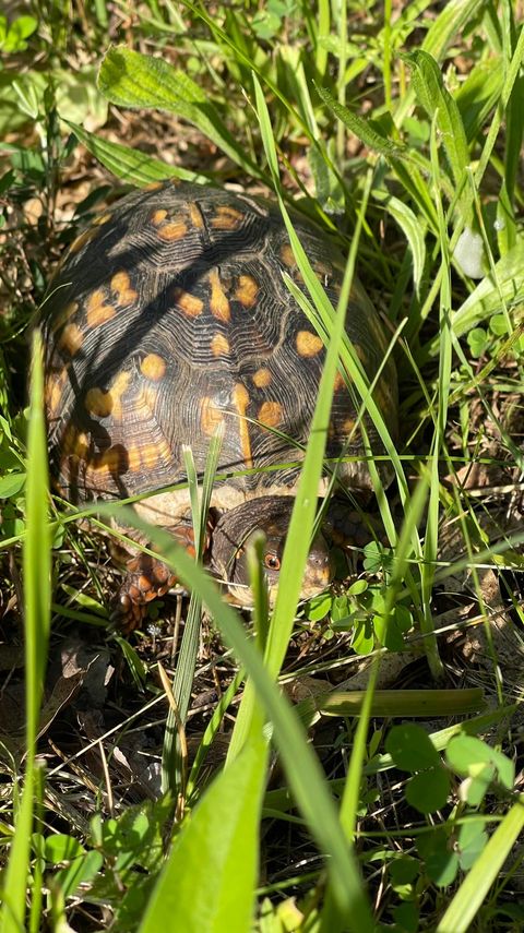 А этот раз нам с Юки на прогулке встретилась восточная коробчатая черепаха (eastern box turtle). Ее особенность – брюшной щит панциря имеет шарнир, что позволяет полностью закрыть “домик” от врагов.
