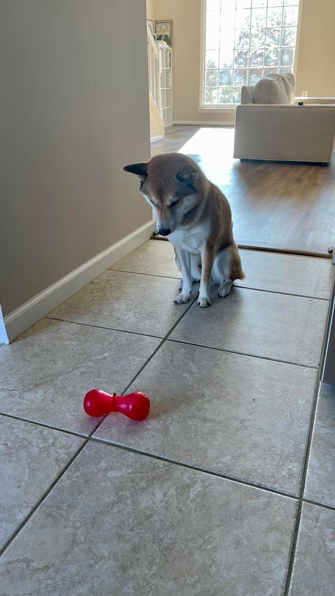 У Юки очень интересно работает “программа”. После еды, особенно сытной, у него всегда включается режим “давай поиграем”. Он и в другое время вкличается, но рандомно, а после еды — всегда. Выглядит это так: он приносит игрушку, и садится, на нее смотрит. Через секунд пять громко ее подбрасывает и опять садится. Ну ожидая, что ее возьмут и кинут в дальний угол.