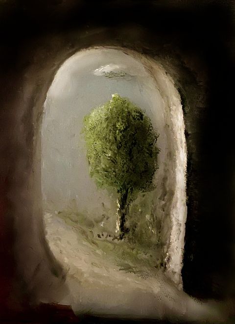 В общем, подарили мне на день рождения масляные краски, и я теперь делаю первые шаги в живописи. Первые блины, как всегда, комом, ну надо как-то фиксировать прогресс, так что буду публиковать все, что получается. Купил пять холстов, использовал пока четыре. Приложены в хронологическом порядке. Домик зимний — первая попытка (ужас-ужас), домик летний — вторая (чуть менее ужас), виноград — третья (уже не ужас, но все равно ошибок много), и вот дерево — четвертая (сегодняшняя). Дерево я еще хочу дорисовать, там надо за ним какой-нибудь горизонт изобразить, наверное. Или не буду, лучше что-то новое сделать.