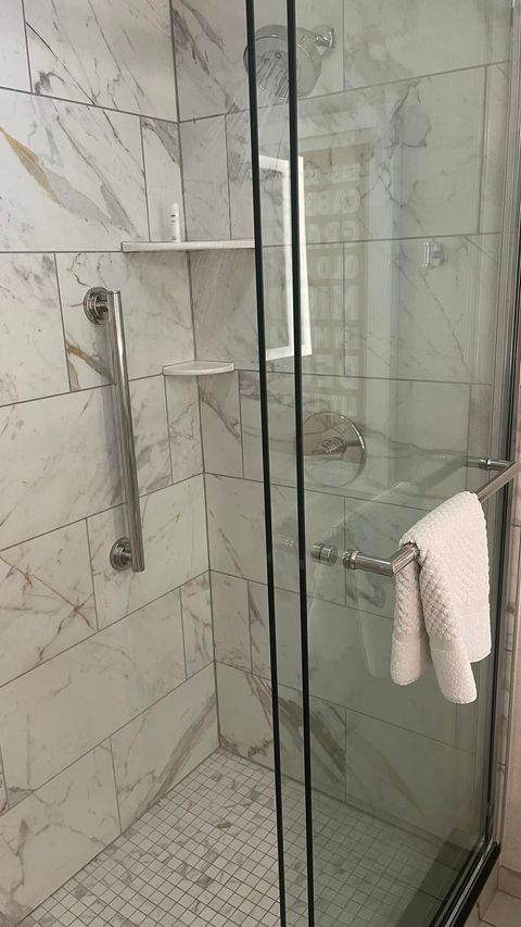 Вот более идиотской конструкции душа придумать нельзя. Чтобы открыть душ, нужно под ним стоять. Ручка регулирует температуру. Вертится на полтора оборота. Нужно ее повернуть и остановить в нужном положении. В процессе тебе на голову резко льется холодная вода большими напором, которая в зависимости от положения ручки нагревается за секунду, но ты уже отскочил. И вот если ты перестарался с поворотом на почти полтора оборота и включил кипяток (это полных полтора оборота), то чтобы его выключить, нужно под этот кипяток встать. Потому что иначе до ручки не дотянуться! Правая часть двери не сдвигается, конечно. И это Хилтон за 200-250 долларов за ночь.