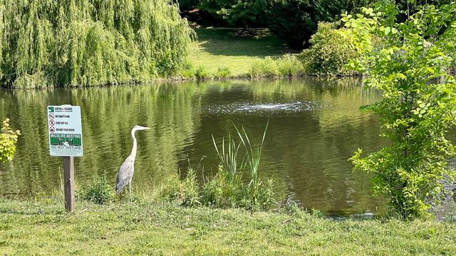 Пейзаж у дома. С Юки гуляем, а тут цапля ждёт, пока мимо проплывет завтрак. Несколько дней назад на другой стороне пруда случилось убийство гуся. Вот в момент написания поста прохожу мимо этого места. Перья разбросаны в огромном количестве. Пару дней назад тут лежала тушка без головы. Мы очень переживали, потому что это был наверняка папаша одной из гусиных семей с подрастающими гусятами. Они с мамой очень мило за детишками присматривали, плавали с ними, защищали. Непонятно была судьба гусят. От папаши на сегодня не осталось ничего, хотя как ни странно ни одного стервятника на поляне не видел. Обычно они по несколько штук прилетают и убирают территорию. В местных пабликах на мой репорт соседи дают три версии – лиса, койот, или енот. Енотов я тут ещё не видел, койотов тоже, но соседи говорят они есть. Зато видел один раз гулящую соседскую кошку. Ей кроме названных ребят, стоило ещё опасаться больших хищных птичек. Давно не видел кошку