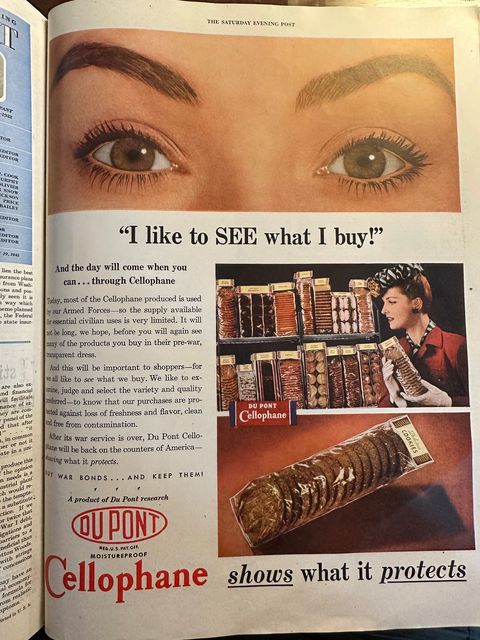 Иллюстрирую этот пост несколькими кейсами: Monsanto и Celanese, корпорации, производящая пластик и агрохимикаты (впоследствии приобретена Bayer), DuPont, рекламирующая свои новые продукты — целлофан и водоотталкивающее покрытие Zelan, и реклама компаний USS Steel, Republic Steel, производящих сталь.