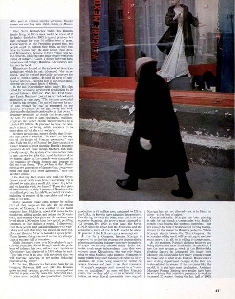 Четырнадцать миллионов русских купили телевизоры (450 долларов за 14-дюймовый экран). Автомобильный завод Москвич прошлым годом выпустил 76 000 своих маленьких машин размером с Фиат, которые стоят около 4 000 долларов.