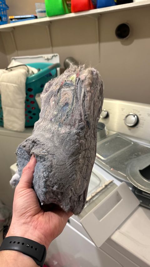 Оказался вышедшим из строя термопредохранитель. Но он не просто так вышел из строя — забитая вентиляционная труба, по которой сушка “выплевывает” ворс и пыль и выдувает на улицу влажный воздух. Стоимость термопредохранителя — те же 15 долларов.