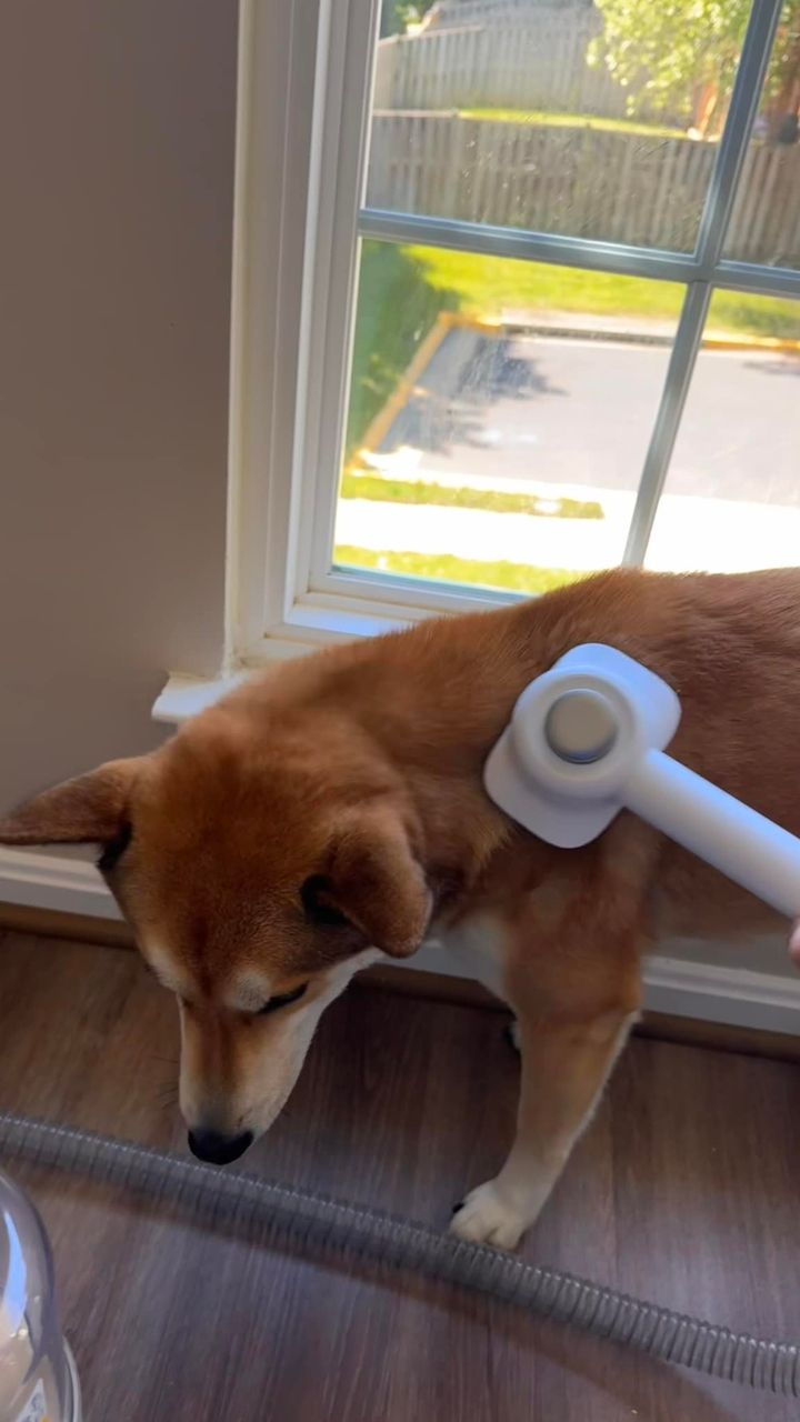 Самое полезное приобретение для Юки — Pet Grooming Vacuum. Уже полгода пользуемся. Я не знаю зачем псу отращивать шерсть на лето… Похоже, раз эта штука нужна круглый год, окупаются потраченные 80 долл довольно быстро. Можно и щёткой вычёсывать, но потом довольно сложно очищать дом от летающего по нему пуха. Поэтому щёткой — только на лоджии. А этой штукой можно и внутри