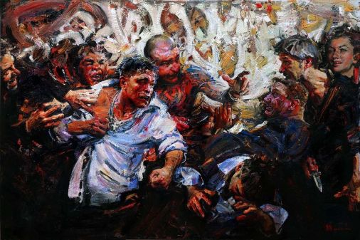 Ух, какой хороший художник сегодня! Евгений Монахов (Evgeniy Monahov, 1974). Смотрю на его «Офелию» (первая в сете, очевидно по мотивам Джона Эверетт Милле) и вот что подумалось — а интересно было бы взять любую известную картину и нарисовать происходящее там со слегка иного ракурса, сохранив узнаваемость. Нигде такого не видел. Что мне нравится в картинах Евгения — они заряжены смыслами, за ними скрывается как минимум очень удачная постановка сцены, и уже потом отличная техника. Как говорится, когда портрет не просто портрет.