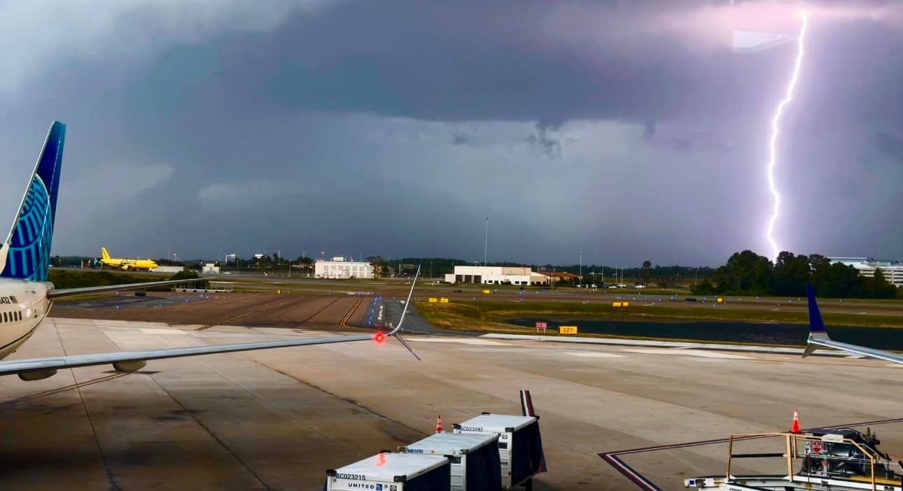 Гроза, задерживают рейс. У FAA такие правила: если молния в определённом радиусе, то начинается отсчёт 15 минут. Если до истечения ни одной новой молнии, аэропорт восстанавливает работу, объявляем посадку, и вероятно самолёт оперативно улетает. В итоге от гейта толком не отойти