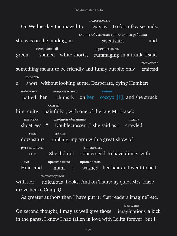 Далее перевод выводится над словом. Для Books это тоже пляски с бубном, но в итоге заработало на iPad и ноутбуке. На телефоне, к сожалению, нужно чуть иначе делать, в итоге версия книжки для телефона и версия для iPad/компа будут разными. Ну это меня не очень напрягает, какая разница.