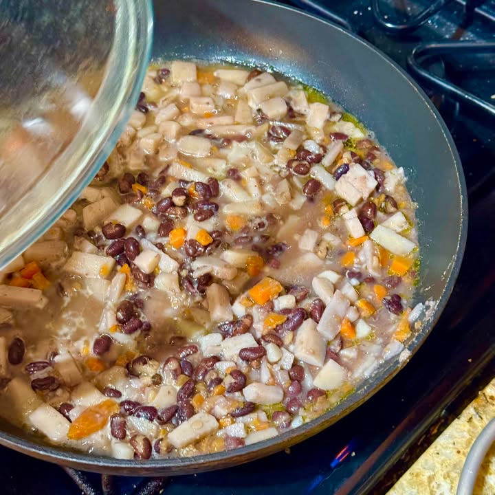 Норм, жарю суп. Обычное дело. Потому что первое, что делают у нас в диетически грамотной семье, это съедают из супа баранину кусками и бульон. И когда лезешь в холодильник, со дна кастрюли мне подмигивает картошка с фасолью. Теперь осталось отдельно пожарить сардельки и норм ужин