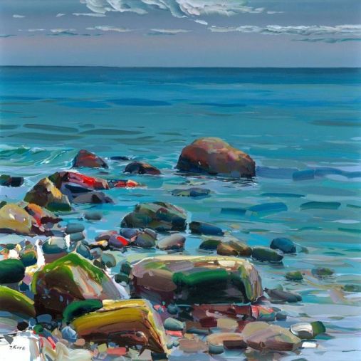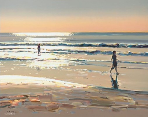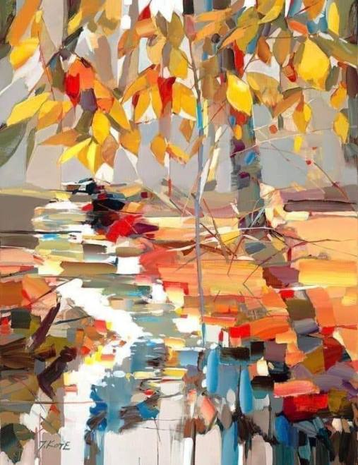Интересный американский художник — Йозеф Котэ (Josef Kote). У него вроде как простые темы, но очень необычная техника и использование цвета, которые сразу выделяют его работы, и делают их очень узнаваемыми. По сути, у него четыре темы — seascapes, cityscapes, landscapes и кажется одна и та же женщина. Также, кажется, он исключительно работает с акрилом на холсте (Особенность акриловых красок в том, что они быстро сохнут, что позволяет художнику накладывать мазки друг на друга без долгого ожидания высыхания. Из-за этого блендинг, свойственный масляной живописи, в акриле практически отсутствует, если не использовать специальные добавки для замедления высыхания. Однако акриловые краски дают яркость и насыщенность цветов, которой нет в «масле»).
