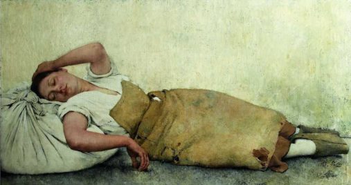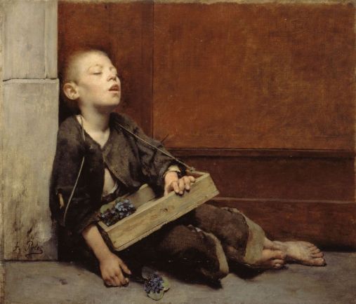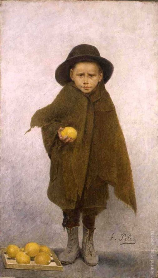 Французский художник испанского происхождения Фернан Пелес (Fernand Pelez, 1848 — 1913). Самая сильная картина из серии — первая, изображающая изможденную уставшую мать и ее пятерых детей, живущих на улице. Мне немногочисленные полотна Пелеса напоминают некоторые полотна Томаса Бенджамина Кеннингтона, о котором я писал в мае этого года. У Пелеса немного картин дошло до нас.