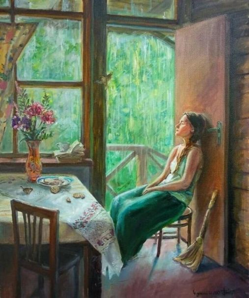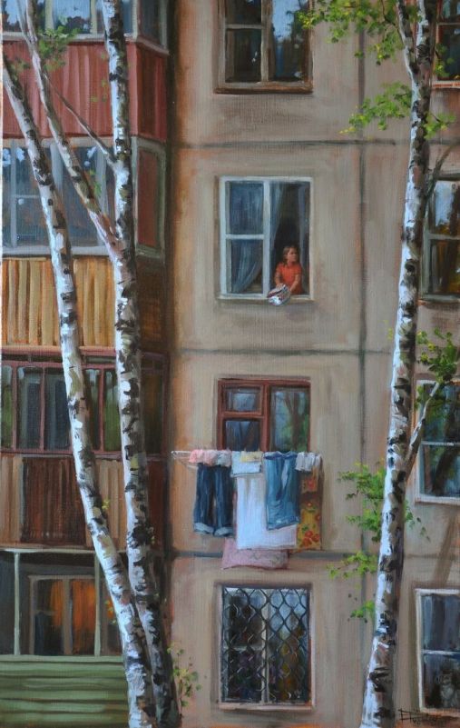 Настасья Чудакова. Вайб тот же, что и в предыдущем посте, но техника тут более традиционная. На картинах — дети, коты, деревня. Никакой критики ни прошлого, ни настоящего — просто вот такой дух российской глубинки с детьми и котами. Очень душевно.