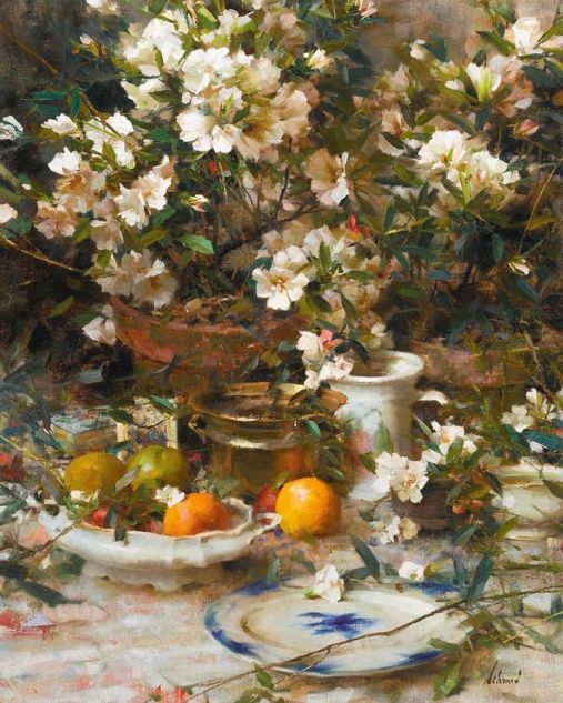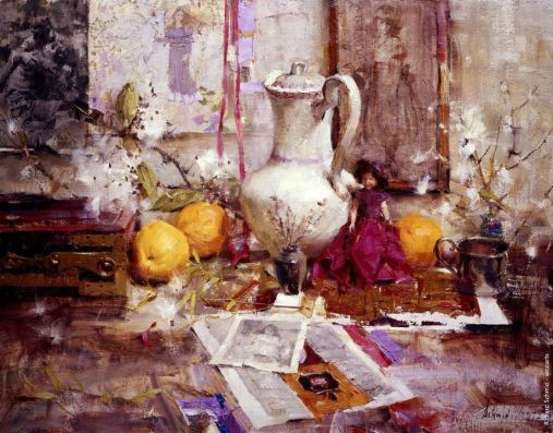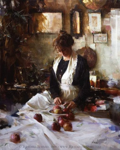 Ричард Шмид (Richard Schmid) — потрясающий современный художник, книги которого (конкретно Alla Prima II) я периодически тянусь купить, но ценник кусается даже для б/у опций (~$150-200), и все еще не купил, для меня это пока еще очень дорого. В книге Alla Prima II, кстати, он показывает процесс их создания слой за слоем.