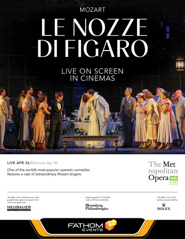 Прям даже не знаю, хвалить Metropolitan Opera или ругать. У них новая постановка Le Nozze di Figaro, и в этом году они его показывают строго один раз в живой трансляции 26 апреля и строго один раз в записи 30 апреля, и только в некоторых кинотеатрах, но по всему миру. Они за деньги дают доступ к записям, но записей текущего сезона никогда не бывает — ну понятно почему. То есть, Фигаро добавится в их библиотеку только в следующем году.