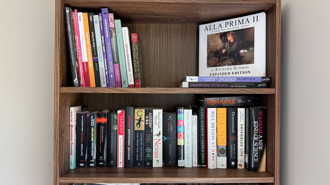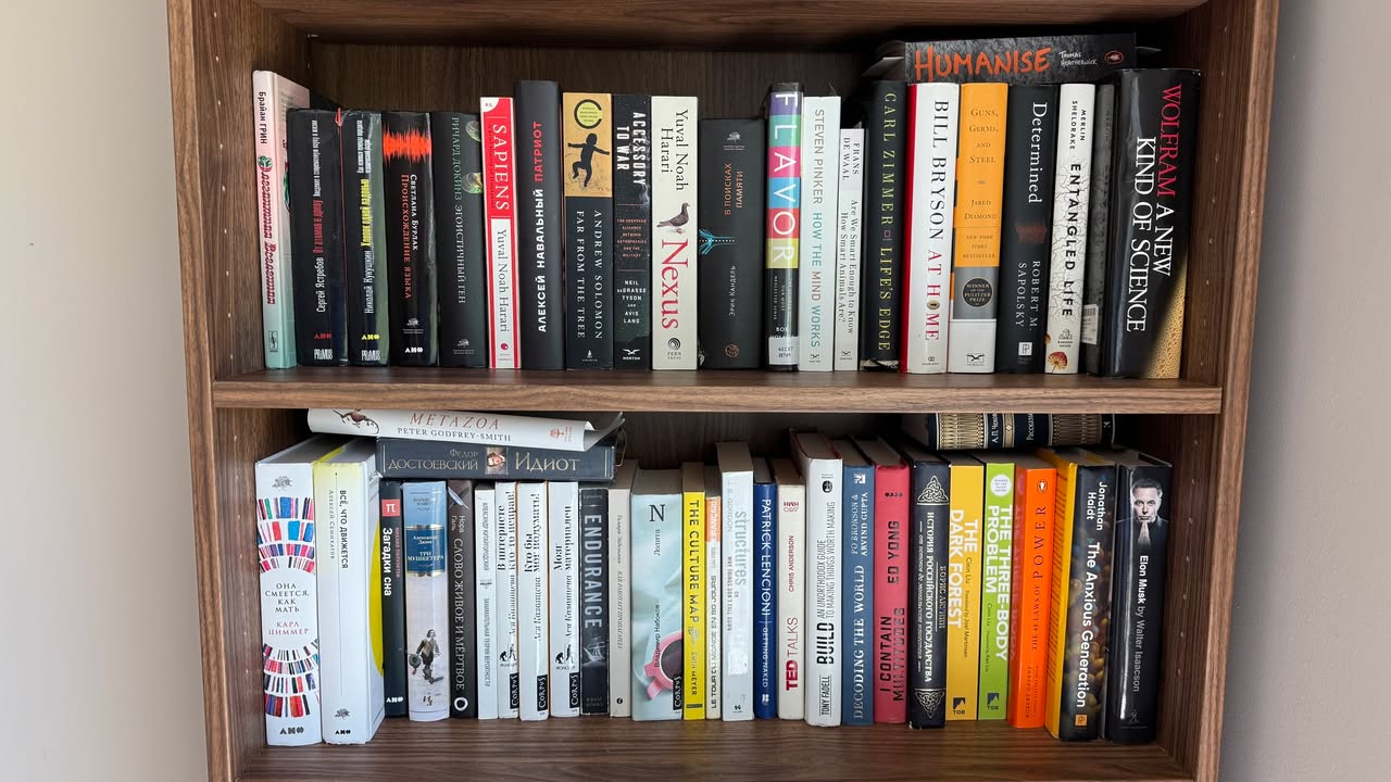 Плюс некоторые книжки там биографии и художественная литература. К сожалению, много хороших книг, которые читал и хотел бы поставить на полку, не в бумаге, а в цифре или остались в прошлой жизни.